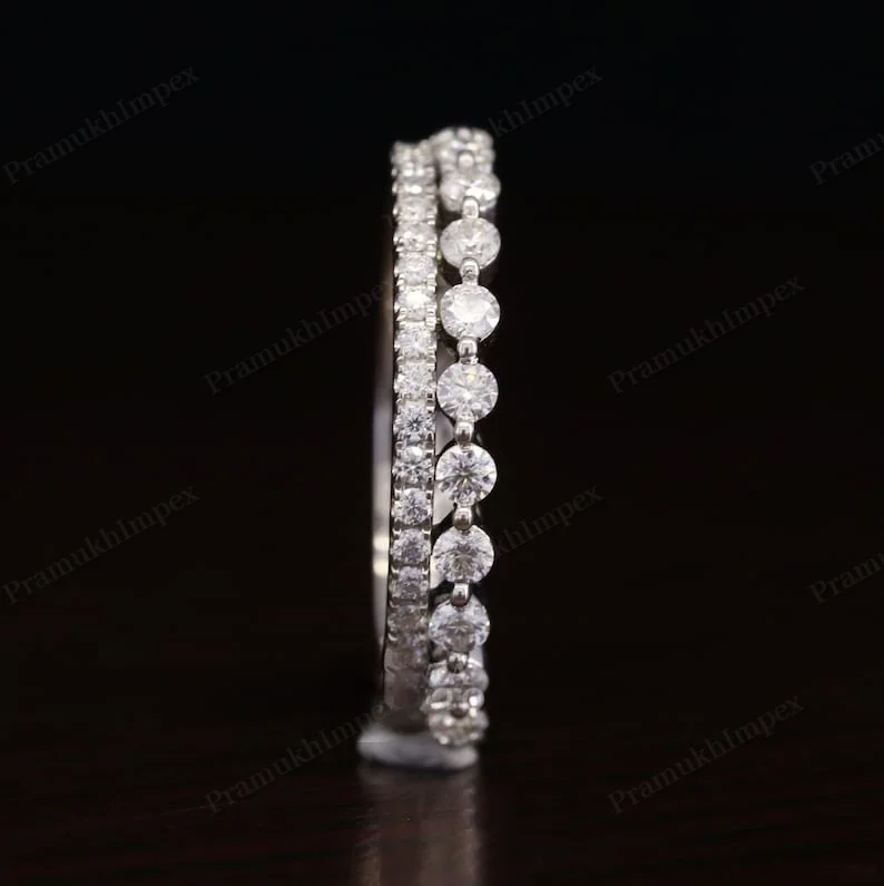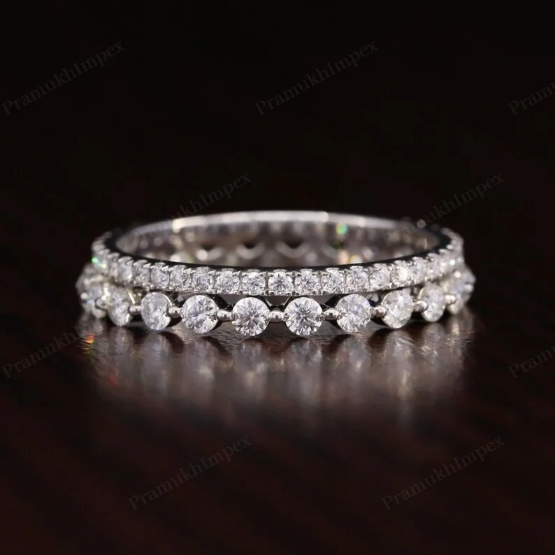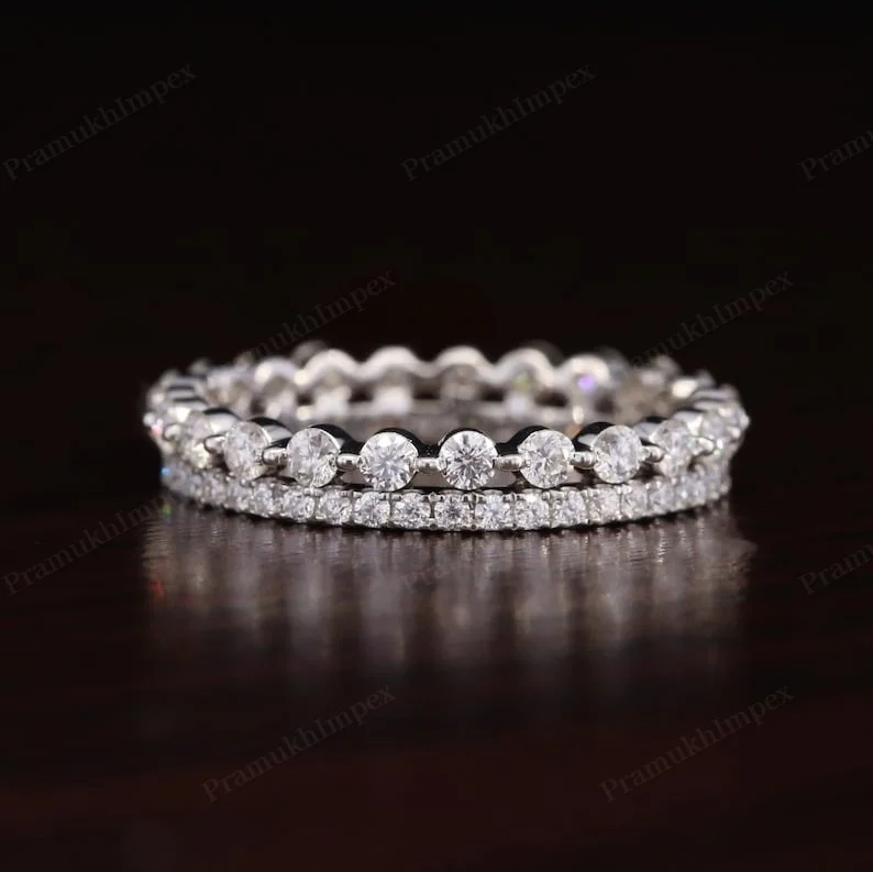 Cut Lab Grown Diamond IGI Certified 1.21CTW VS Clarity Prong Set Floating Full Eternity Classic Wedding Band Sterling Silver